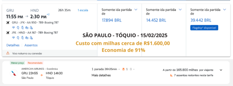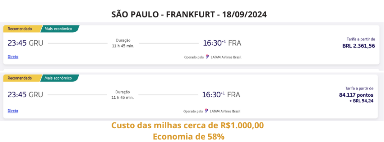 Todas as buscas foram realizadas em 26/06/2024. Foram utilizadas apenas a título de exemplos do potencial de economia que você pode ter utilizando estratégias com pontos e milhas aéreas. As mesmas passagens podem ser encontradas com variação desses valores.